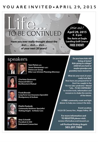 Come to our FREE Educational forum: LIFE . . . To Be Continued